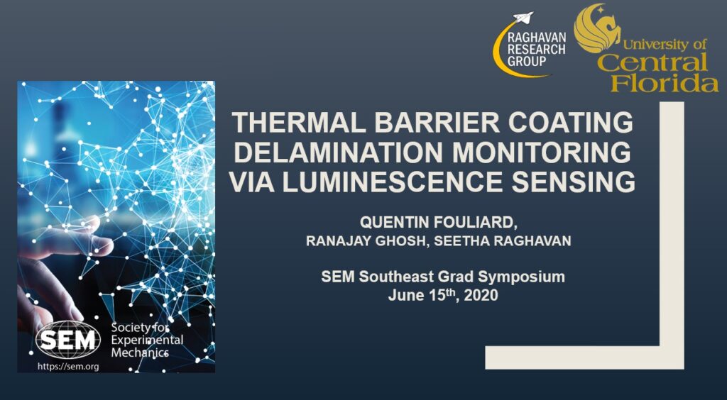 Quentin Fouliard presented at the symposium his work on Thermal Barrier Coating Delamination Monitoring via Luminescence Sensing for the session named “This is Why I’m Hot: Thermal Studies” at the 2020 Southeast Grad Symposium of the Society for Experimental Mechanics (SEM) on June 15th, 2020. Quentin also served as chair for the session on fracture mechanics a.k.a. “Achy Breaky Parts” and as a panelist to provide guidance to graduate students attending the event. The panelists discussed their personal experience through graduate school and tips to lead successful research and to start a career oriented towards engineering and academia. SEM is a professional organization for engineers and scientists in academia, government and industry that focuses on experimental methods for characterization of materials, structures and systems.