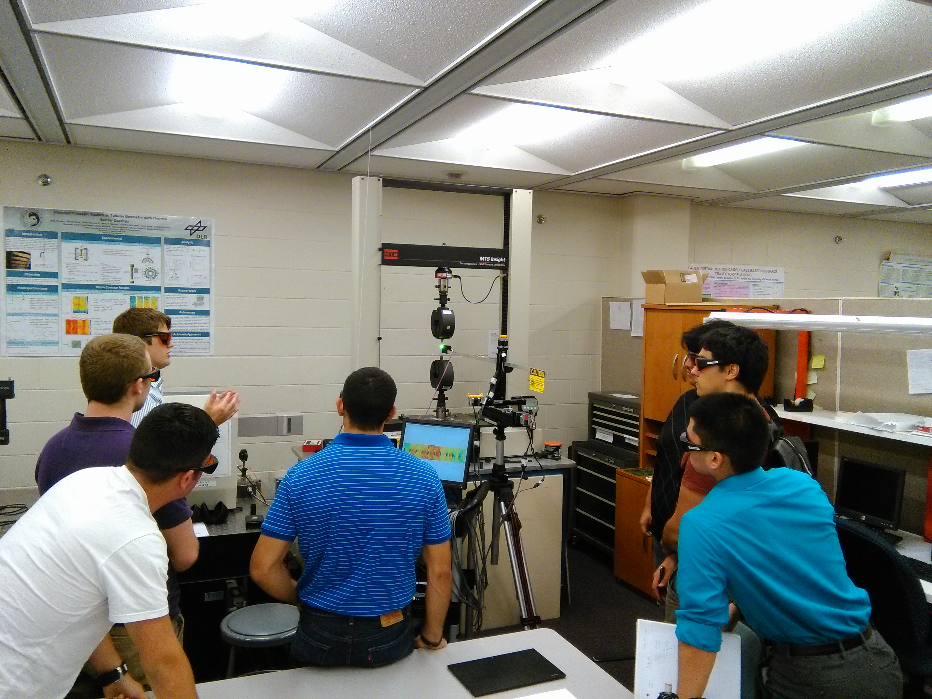 Graduate students Stephen Sofronsky and Alex Bullock, as well as undergraduate students Hunter Williams, Ryan Hoover, and Alex Selimov, led a demonstration for UCF’s Solid Mechanics class.